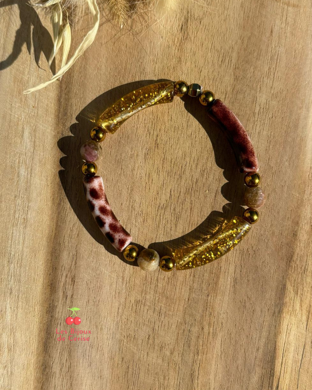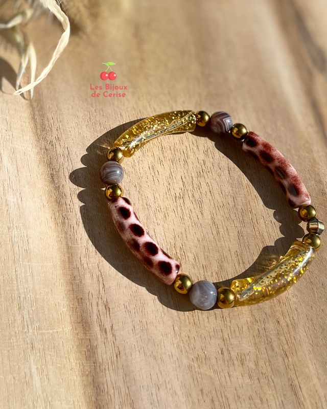 Bracelet Léopard - Hématite, minéraux et acrylique